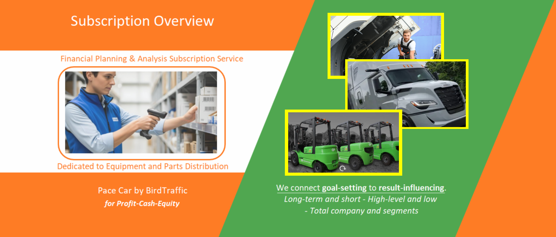 Forward content from Distribution Strategies Group (DSG), National Association of Wholesaler Distributors (NAW) and Modern Distribution Management (MDM) plus samples from our Paid Subscriptions using the Bird Traffic method on Demo Company situations.